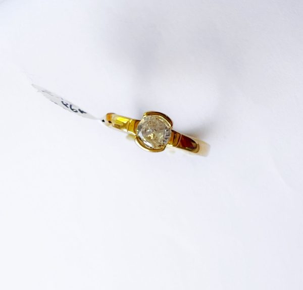 Anillo Oro 18 Kilates con Circón central con bisel liso, peso 2,1 gramos