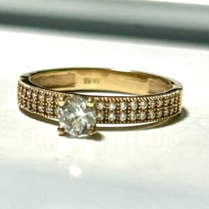 Anillo Oro 18 Kilates con Circones central y laterales para compromiso para lucir como pisaprenda, peso 1,9 gramos