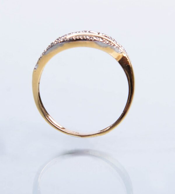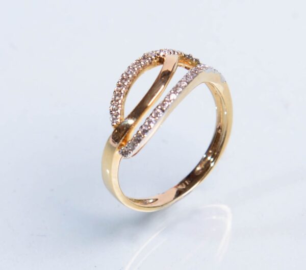 Anillo Oro con Circones formas curvas, peso 2.86 gramos, su forma como la vida sin fin solo líneas curvas
