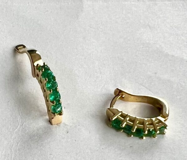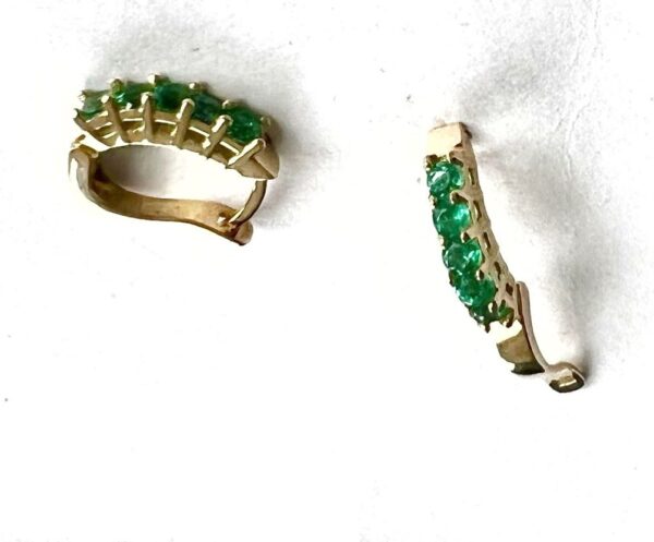 Aretes estilo candonga con Esmeraldas Colombianas engastadas al Granete realzando su tamaño color y luz