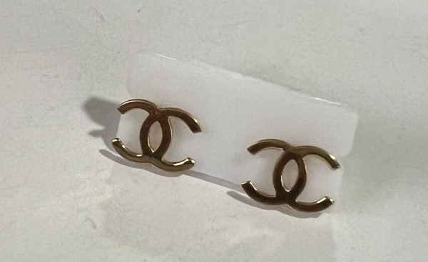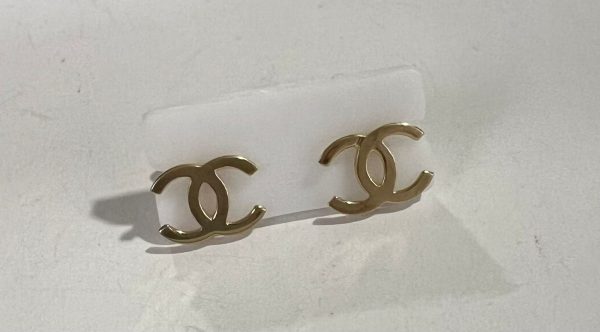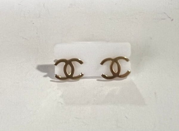 Aretes Oro 18 Kilates logo Chanel liso tapa rosca tipo chanel con broche de seguridad